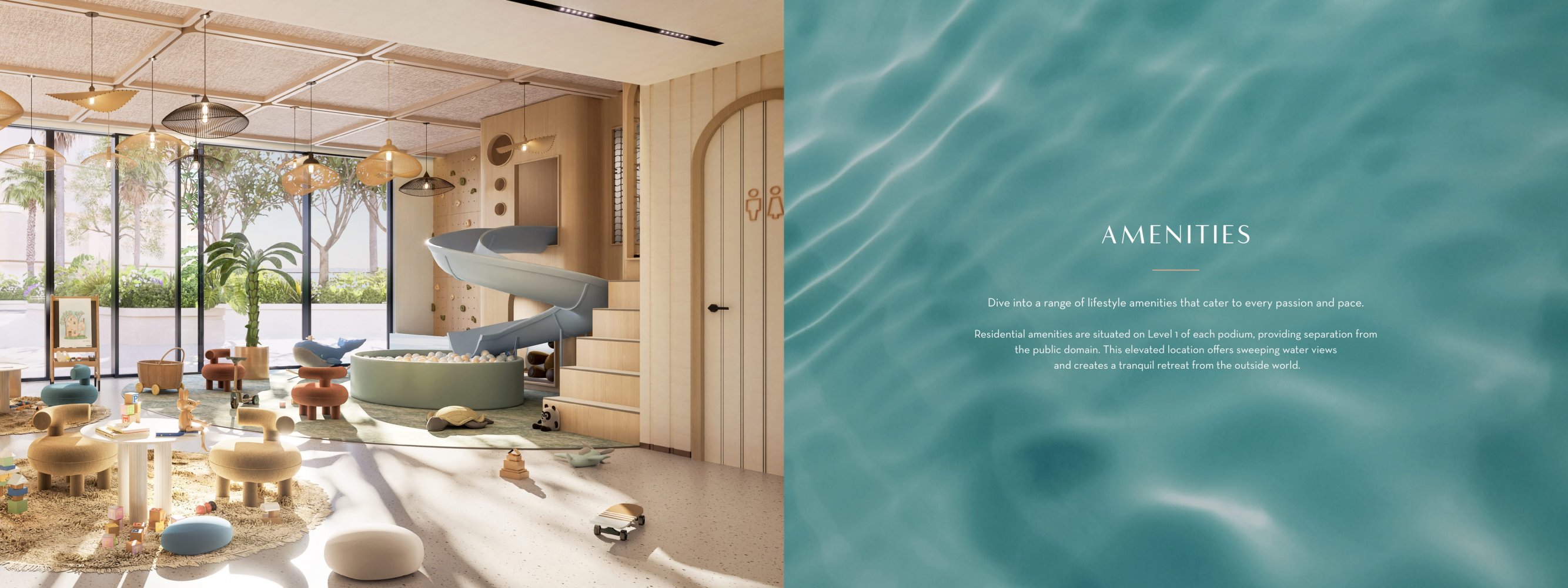 Die Bewohner profitieren von umfassenden Premium-Annehmlichkeiten wie Infinity-Pools mit Meerblick, voll ausgestatteten Fitnessstudios, Planschbecken und Schwimmbädern für Kinder, multifunktionalen Räumen und Fitnessbereichen im Freien. Weitere Features sind Dampfbäder, Saunen, Kinosäle, Haustierspa und Co-Working-Lounges. Die Insel bietet eine 2 km lange Uferpromenade mit erstklassiger Gastronomie, Boutique-Einzelhandel und lebendigen Gemeinschaftsräumen. Sicherheit und Komfort werden durch 24/7-Sicherheitsdienste, Concierge und Valet gewährleistet. Nachhaltigkeitszertifikate umfassen Fitwel 3-Sterne und LEED Platin (Vorbescheinigung).