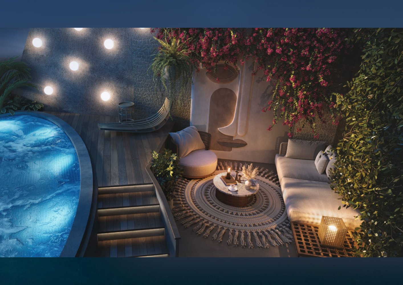 Das Layout des Gebäudes wurde mit einem besonderen Fokus auf Privatsphäre und die Verbindung mit der Natur gestaltet. Im Nordostbereich befindet sich ein Schwimmbad, das über eine atemberaubende Brücke mit dem Hauptturm verbunden ist. Auf den oberen Etagen befindet sich ein hochmodernes Fitnessstudio mit ungestörtem Blick auf das Meer. Die untere Ebene ist ein wahres Spiegelbild des luxuriösen Lebens, mit Terrassen und weitläufigen Wassermerkmalen, die für eine Atmosphäre der Verbindung, Ruhe und Feier sorgen.