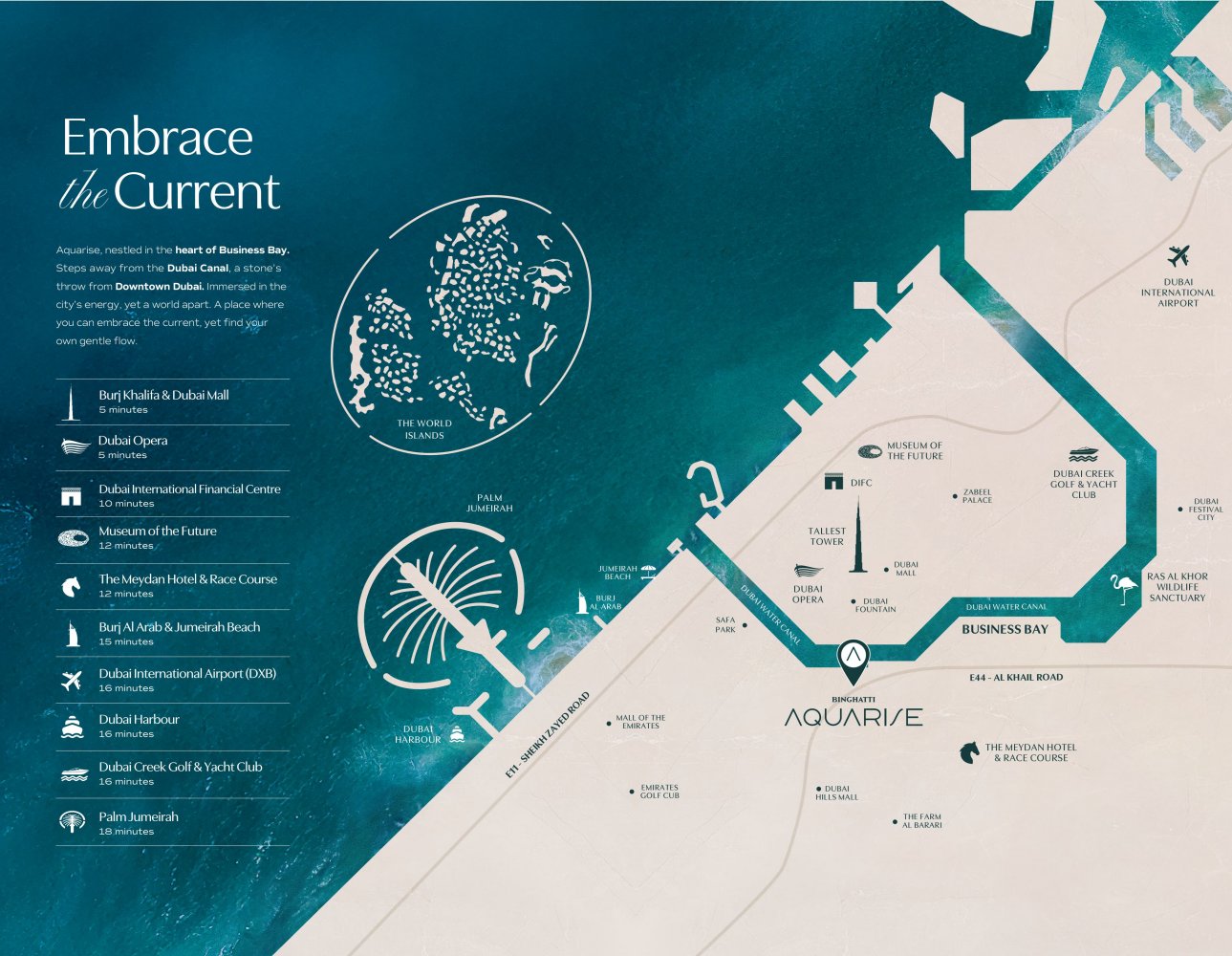 Experience refined living in Business Bay’s Aquarise, where fluid architecture meets serene waterfront views, combining luxury and tranquility in Dubai’s heart.