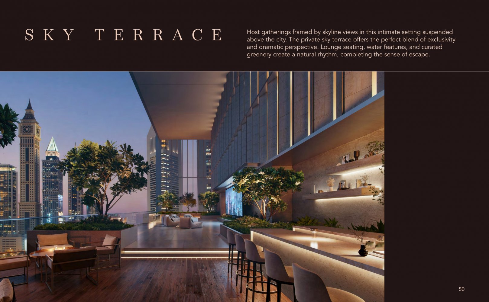 Residencias exclusivas ultra lujosas que ofrecen una vida sofisticada con vistas impresionantes a la ciudad y al frente marítimo en el principal distrito de negocios de Dubái.