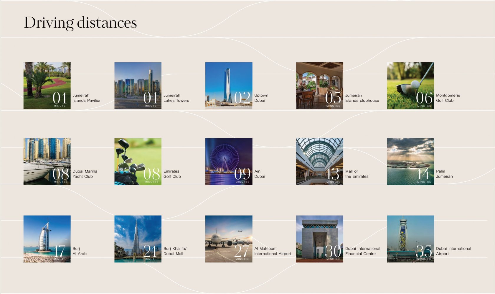Situada a minutos de Dubai Marina, Emirates Golf Club y principales destinos comerciales y gastronómicos, Jumeirah Islands integra perfectamente ocio y comodidad. Ya sea que busque un refugio tranquilo o un estilo de vida activo, estas residencias ofrecen una dirección incomparable dentro de los codiciados vecindarios de Dubái.