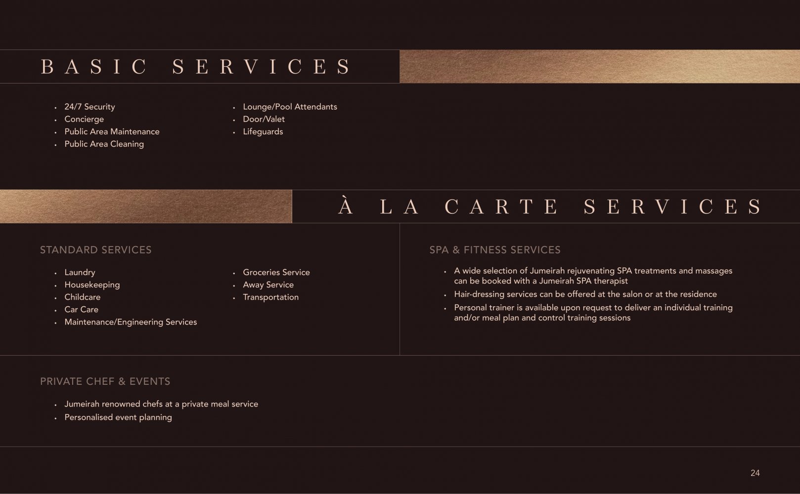 L'arrivée est majestueuse, avec un hall à double hauteur, une cour-jardin paisible et des salons élégants. Les terrasses situées au sommet offrent une vie quotidienne élevée, avec une piscine à débordement luxueuse, des salons de jardin panoramiques et de vastes espaces événementiels en plein air. Des services personnalisés, y compris des soins de spa, des entraîneurs personnels, une assistance de conciergerie et des options de restauration privée, assurent aux résidents un style de vie défini par le luxe et la commodité. Chaque détail est pensé pour offrir une expérience de vie sans faille, mêlant design emblématique et confort raffiné.