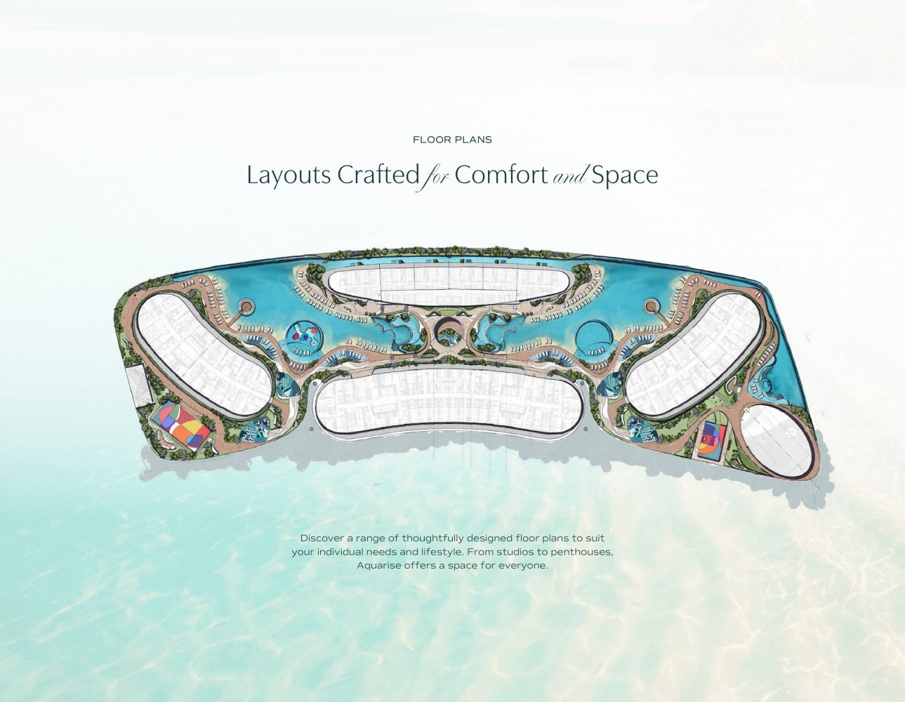 Aquarise propose une gamme complète d’équipements adaptés au mode de vie moderne et au bien-être. Les résidents bénéficient d’une piscine impeccable, d’une salle de sport entièrement équipée et d’un espace détente en contrebas. D’autres atouts incluent un hall de réception luxueux, une plage artificielle, une piste de course et un jardin suspendu offrant une vue panoramique sur la ligne d’horizon. Pour les modes de vie actifs, des installations comme un court de padel, un demi-terrain de basket-ball et une aire de jeux pour enfants favorisent la communauté et la détente. Chaque élément reflète un engagement envers le confort, l’élégance et un design durable.